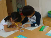 ④Activity:毎日様々な活動を楽しんでいます♪Drawing、Craft、Game、Reading、Song、Story time、Show&Tell、合同活動(縦割り保育活動)など。こどもたちが園の生活を楽しく送っている秘訣は、遊びを重視したコンテンツだからです!!