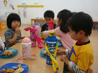 ④Activity:毎日様々な活動を楽しんでいます♪Art activity、Game、Reading、Song、Story time、Show&Tell、合同活動(縦割り保育活動)など。こどもたちが園の生活を楽しく送っている秘訣は、「楽しい!」を重視したプログラムだからです!!